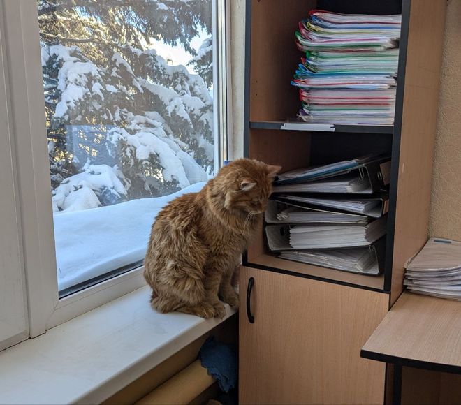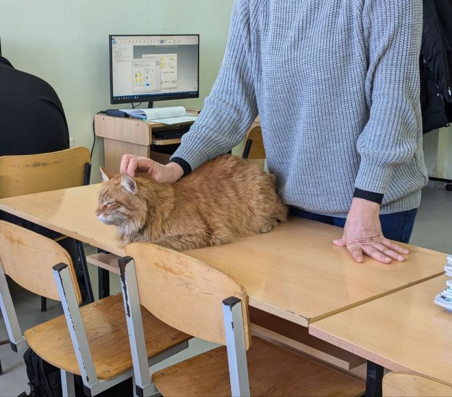 Сначала это был просто гость. Студенты осторожно наблюдали за новым «посетителем», приносили воду и угощения. Преподаватели улыбались, замечая рыжий хвост в коридорах. Но очень быстро стало понятно — Василий уже не гость. Он стал частью нашей большой семьи.