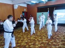 С показательным номером выступили члены военно-патриотический клуб «Команда» и участники секции Каратэ До.