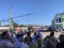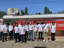 В рамках масштабной агитационно-пропагандистской акции "Мы - армия страны. Мы - армия народа" студенты 1-2 курсов участвовали в торжественной встрече Агитпоезда.