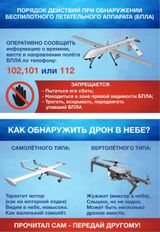 Сообщите о БПЛА по номеру "112", назовите время и место, примерный курс полета, его визуальные особенности, а также свои данные.