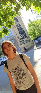 Пройдя по ул. Радищева в сторону Проспекта Столыпина на пересечении улице Комсомольская и Волжская, мы видим граффити "Лицо времени", которое вызвало неоднозначную реакцию. Студенты посчитали, что оно современное и яркое, а вот бабушки на лавочке между собой недоумевали, зачем его нарисовали и вообще, зачем такое некрасивое фотографировать. Думается, что оно имеет место быть, но вот само место выбрано неудачно, так как именно контраст с домами прошлого века и вызывает негатив.