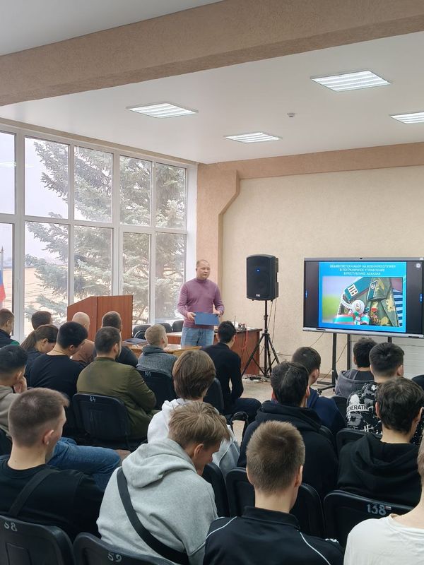 Сегодня в нашем колледже прошло профориентационное мероприятие, посвященное отбору кандидатов на военную службу по контракту в ПУ ФСБ России в Республике Абхазия. Мероприятие собрало студентов, заинтересованных в службе, и представителей ведомства, которые подробно рассказали о преимуществах данной профессии.
