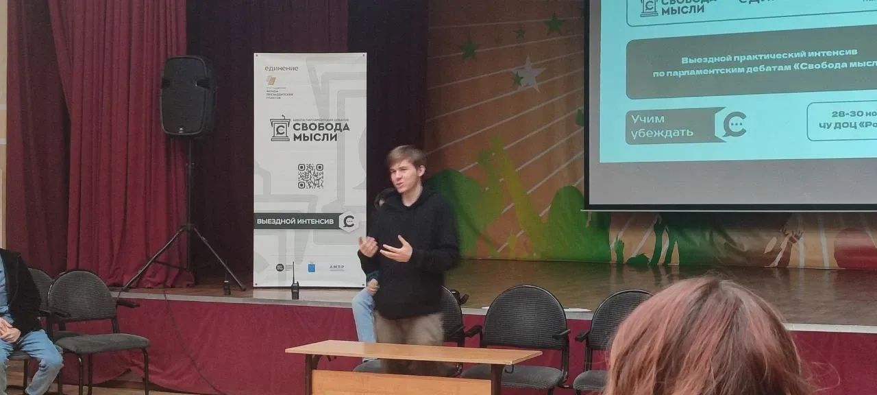 Уже на этих выходных, с 28 по 30 ноября, на площадке ЧУ ДОЦ «Ровесник» команда фонда «Единение» организовала выездной интенсив по парламентским дебатам «Свобода мысли», который объединил активную и инициативную молодежь региона