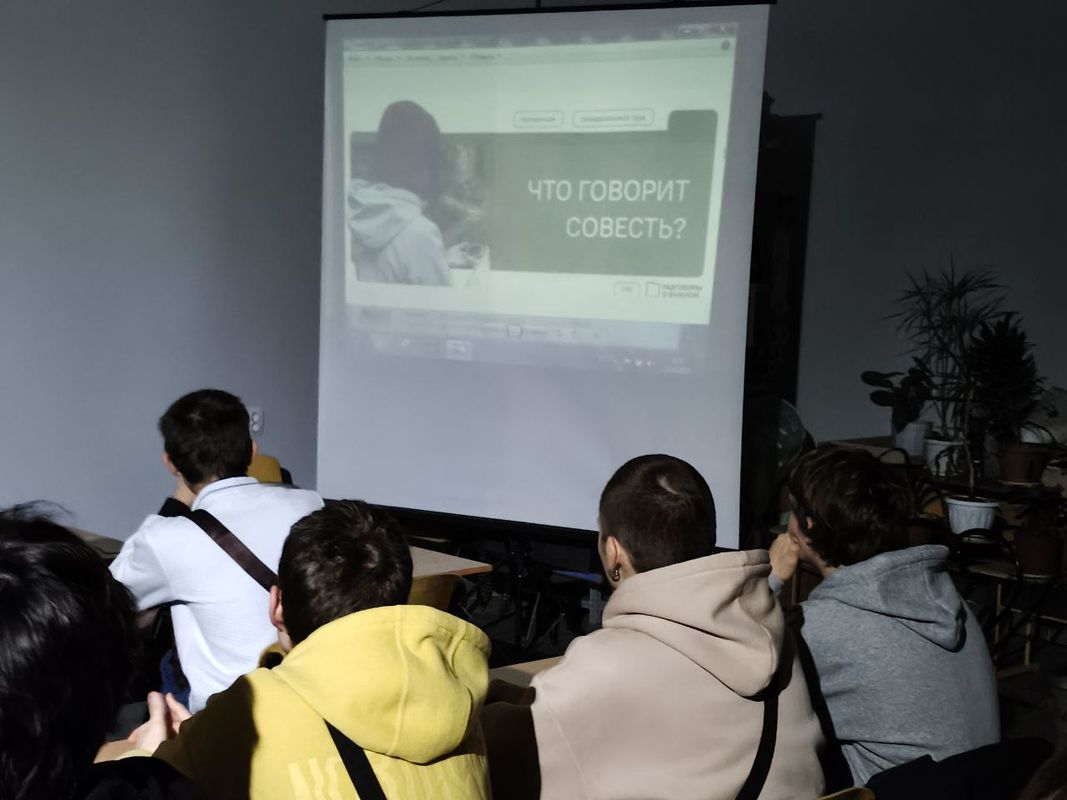 Студенты подбирали синонимы к слову «совесть» и устанавливали связь с таким понятием, как «справедливость». Выполнили интерактивное задание «Что говорит совесть», разобрались в нескольких типичных ситуациях, предложив свой выбор, который диктует их внутренний голос.