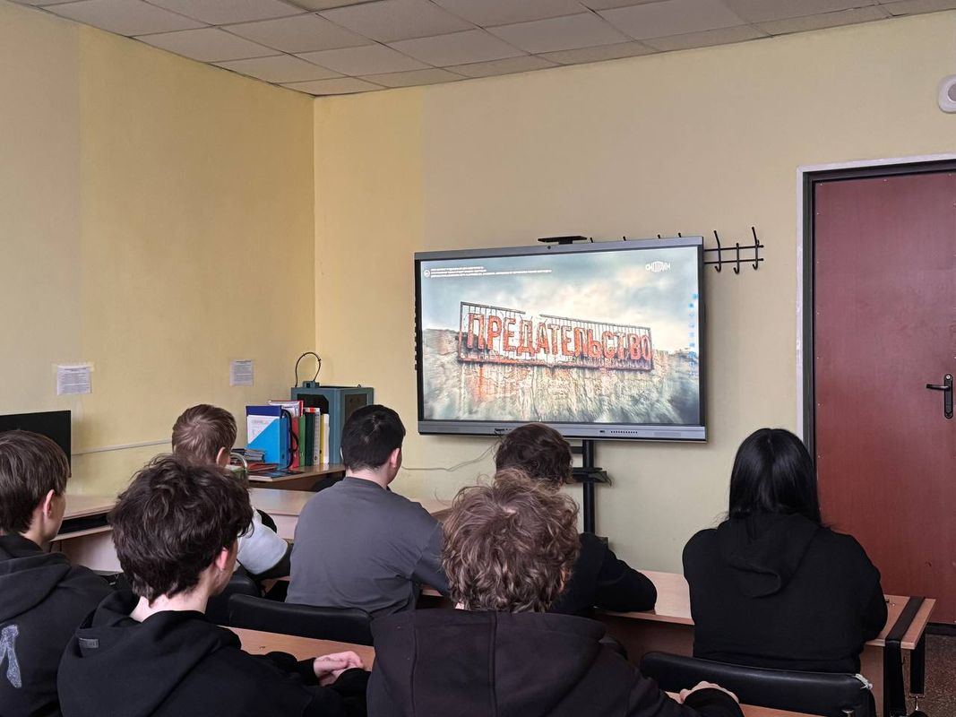 Учащиеся посмотрели документальный фильм «Предательство» (автор А. Медведев), посвящённый важным вопросам выбора, ответственности и жизненных ориентиров молодёжи. Картина затрагивает актуальные темы, с которыми подростки могут сталкиваться в повседневной жизни.