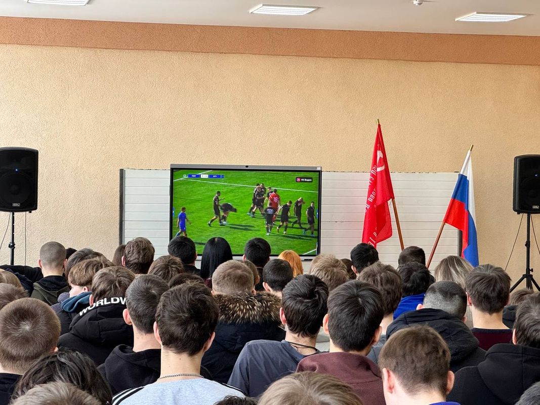 В актовом зале собрались студенты нашего колледжа на мероприятии Саратовской областной студенческой футбольной лиги.