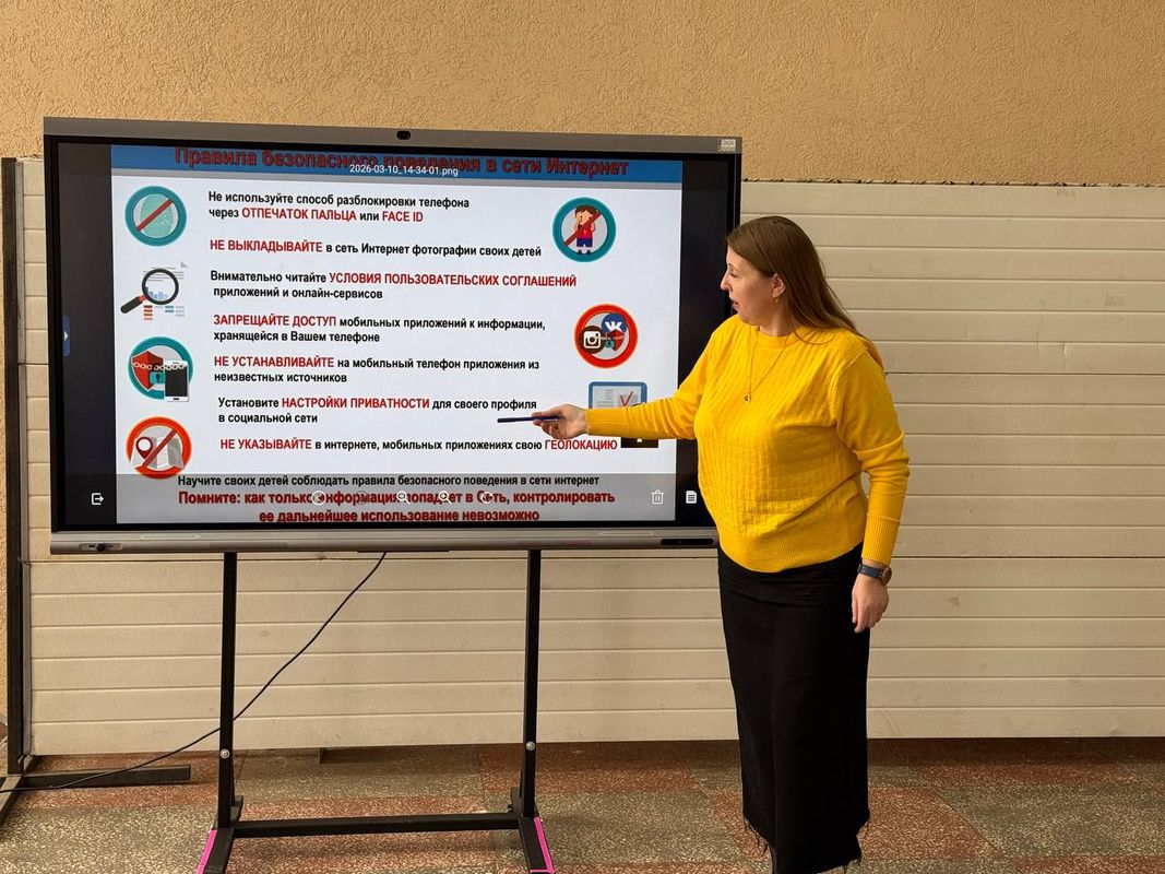 Спикер мероприятия — завуч по учебно‑воспитательной работе — подчеркнула важность цифровой гигиены и ответственного поведения в социальных сетях: как для личной безопасности, так и для сохранения репутации.