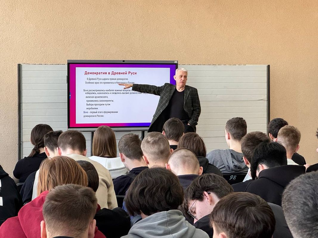 В нашем колледже прошла лекция об истории выборов в России в рамках Месячника молодого избирателя. Студенты познакомились с ключевыми этапами развития избирательного права — от вечевых собраний Древней Руси до современной избирательной системы РФ.