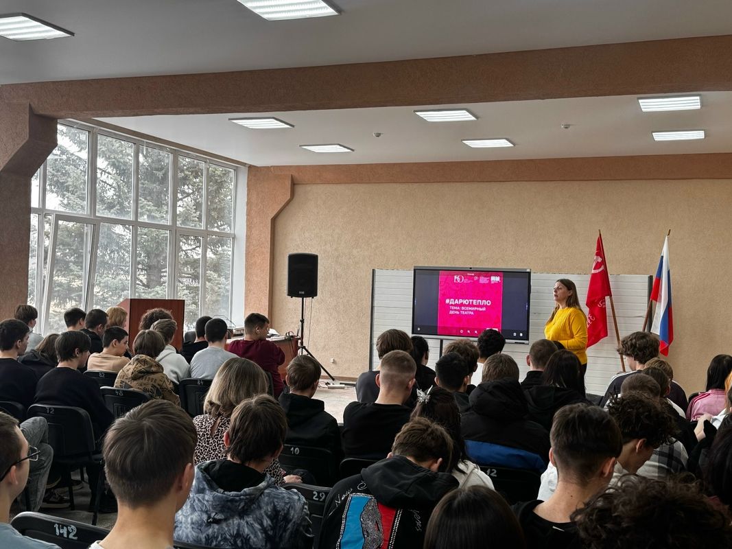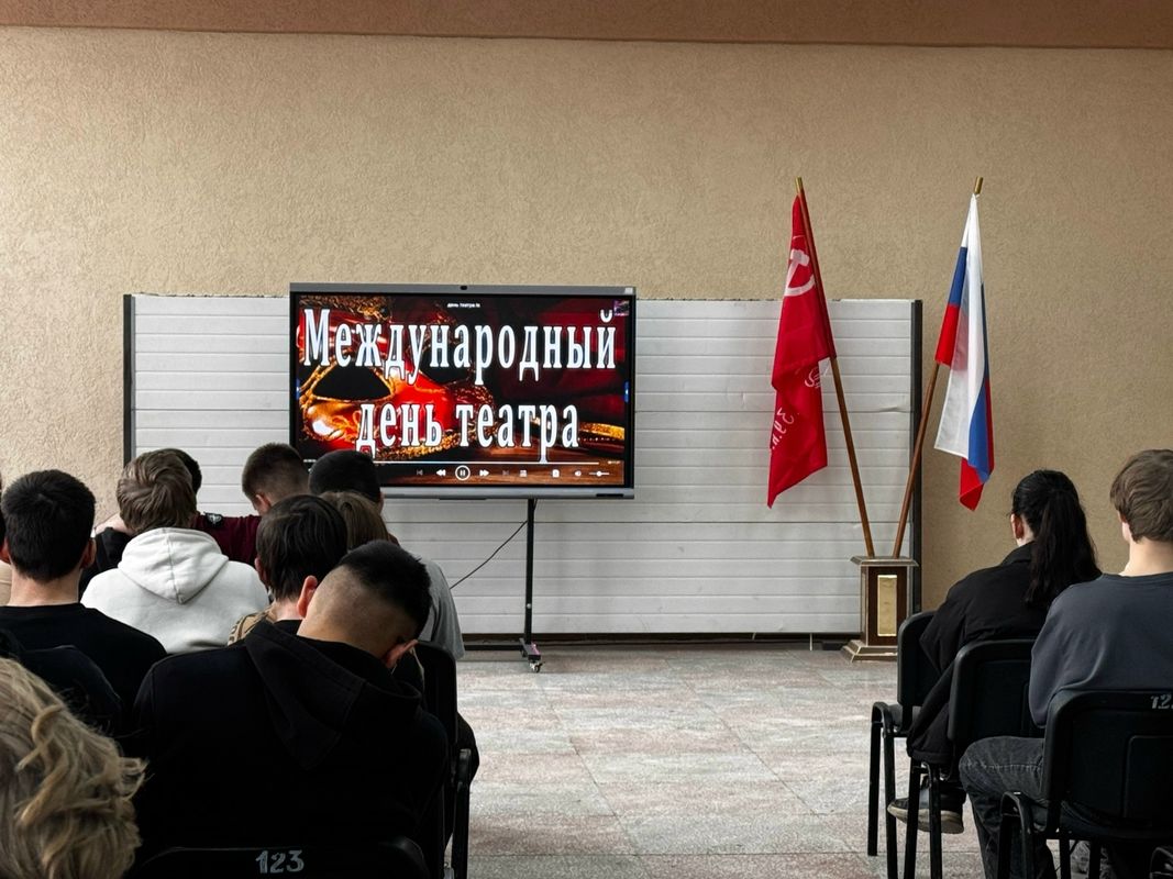 В рамках акции «Дарю тепло» и в честь Всемирного дня театра в нашем учреждении прошла увлекательная лекция об истории этого удивительного искусства. Мероприятие объединило студентов разных курсов — от тех, кто только открывает для себя мир сцены, до давних поклонников театрального мастерства.