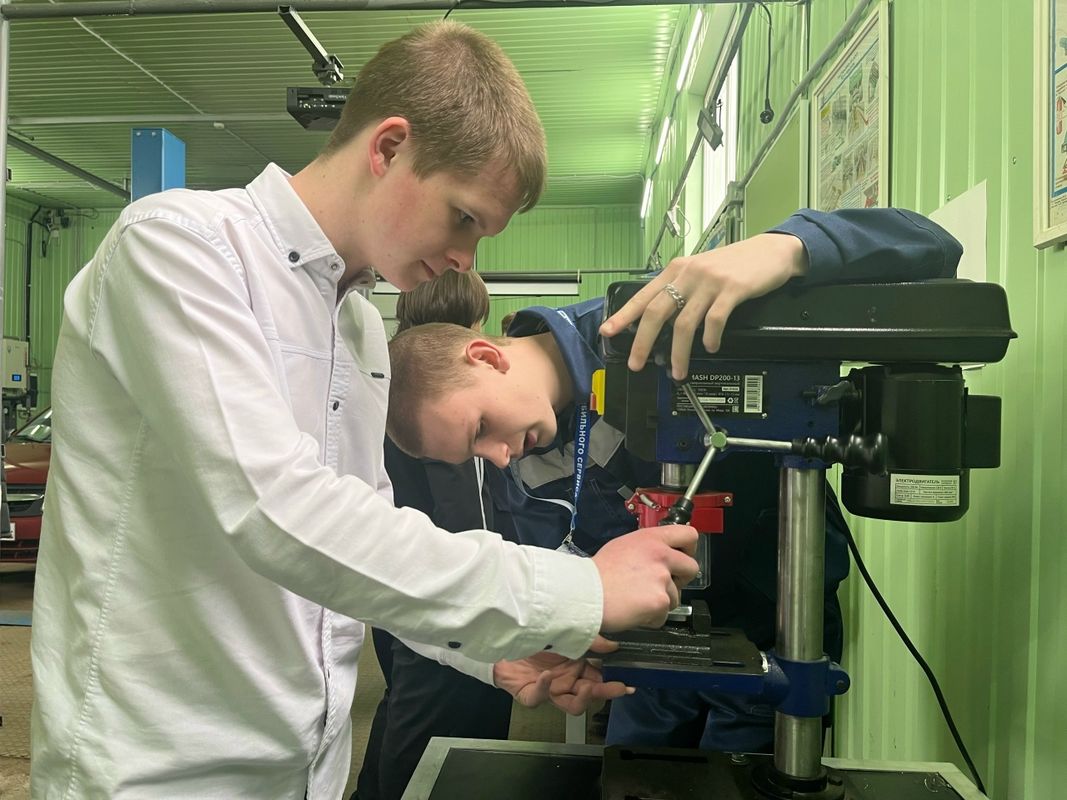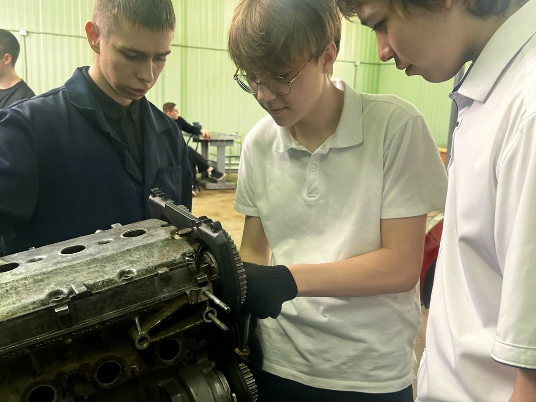 Школьники на практике познакомились с профессиями сферы технического обслуживания автомобилей под руководством опытных наставников. Ребята получили ценный опыт: нарезали резьбу, сверлили отверстия, выполняли компьютерную диагностику автомобиля и участвовали в замене ремня ГРМ.