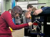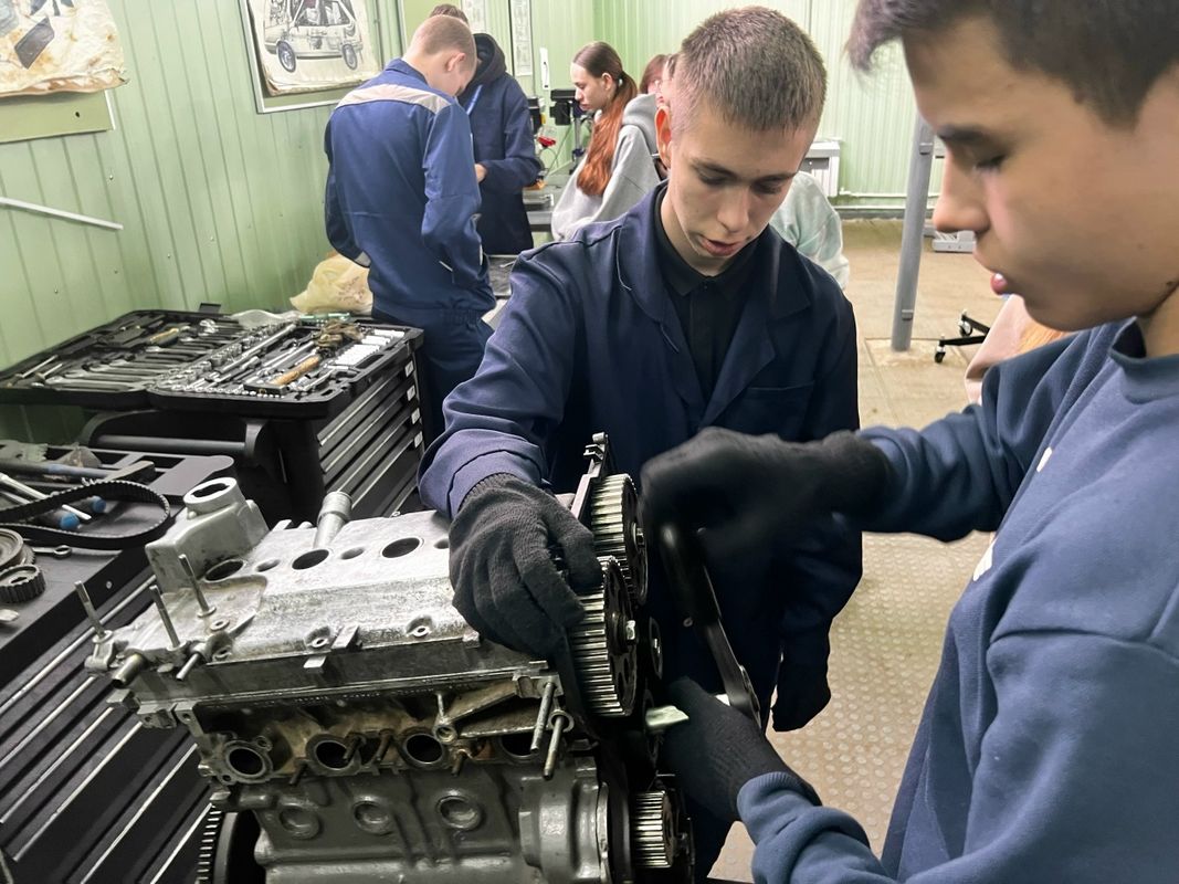 Школьники на практике познакомились с профессиями сферы технического обслуживания автомобилей под руководством опытных наставников. Ребята получили ценный опыт: нарезали резьбу, сверлили отверстия, выполняли компьютерную диагностику автомобиля и участвовали в замене ремня ГРМ.