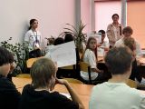 Особый интерес вызвал интерактив «Профессии и студенты», где команды в формате пантомимы и рисования отгадывали специальности, реализуемые в кластере. Завершилось мероприятие «открытым микрофоном»: обучающимися задали вопросы о поступлении после 9 класса, учебном процессе и студенческой жизни, после чего получили памятные карточки с пожеланиями.
