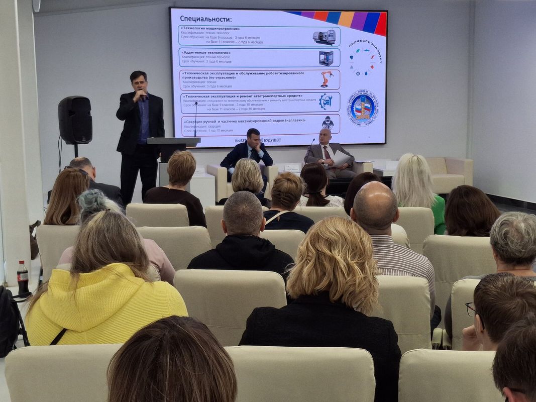 17 апреля 2026 года в рамках ЕДОД заместитель директора по общим вопросам ГАПОУ СО «СКПТиАС» Филиппов А.В. и начальник отдела управления кадров филиала АО «НПЦАП» – ПО «Корпус» Горшкова М.Н. приняли участие в областном родительском собрании на базе ЦОПП Саратовской области.