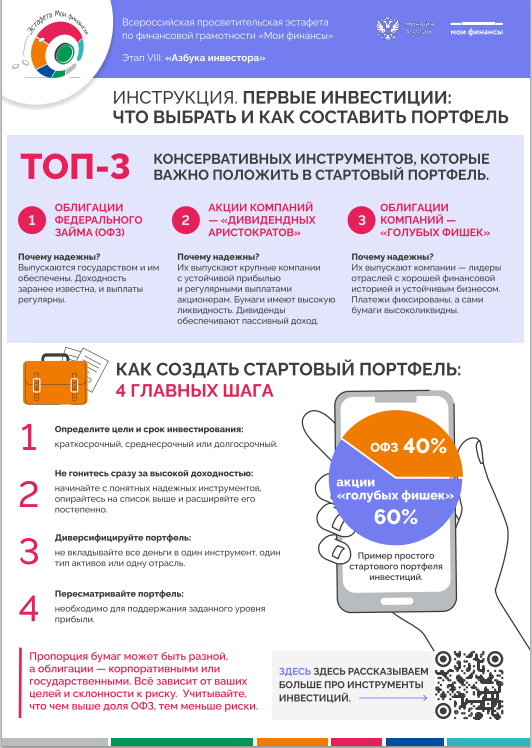 Тема данного этапа: "Азбука инвестора". Предлагаем ознакомиться с инструкцией «Первые инвестиции: как выбрать и как составить портфель».