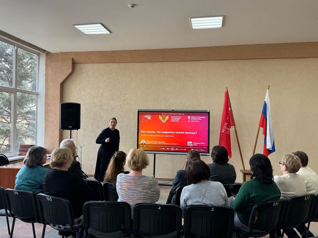 В рамках мероприятия родители просмотрели тематический лекторий. Из него они узнали, какие изменения в поведении, эмоциях и привычках могут сигнализировать о трудностях подростка, а также как отличить возрастные особенности от реальных проблем. Участники получили представление о том, какие фразы и высказывания ребёнка должны насторожить и как начать деликатный разговор, если есть подозрения, что у подростка возникли сложности.
