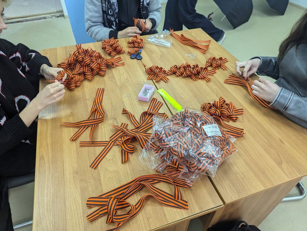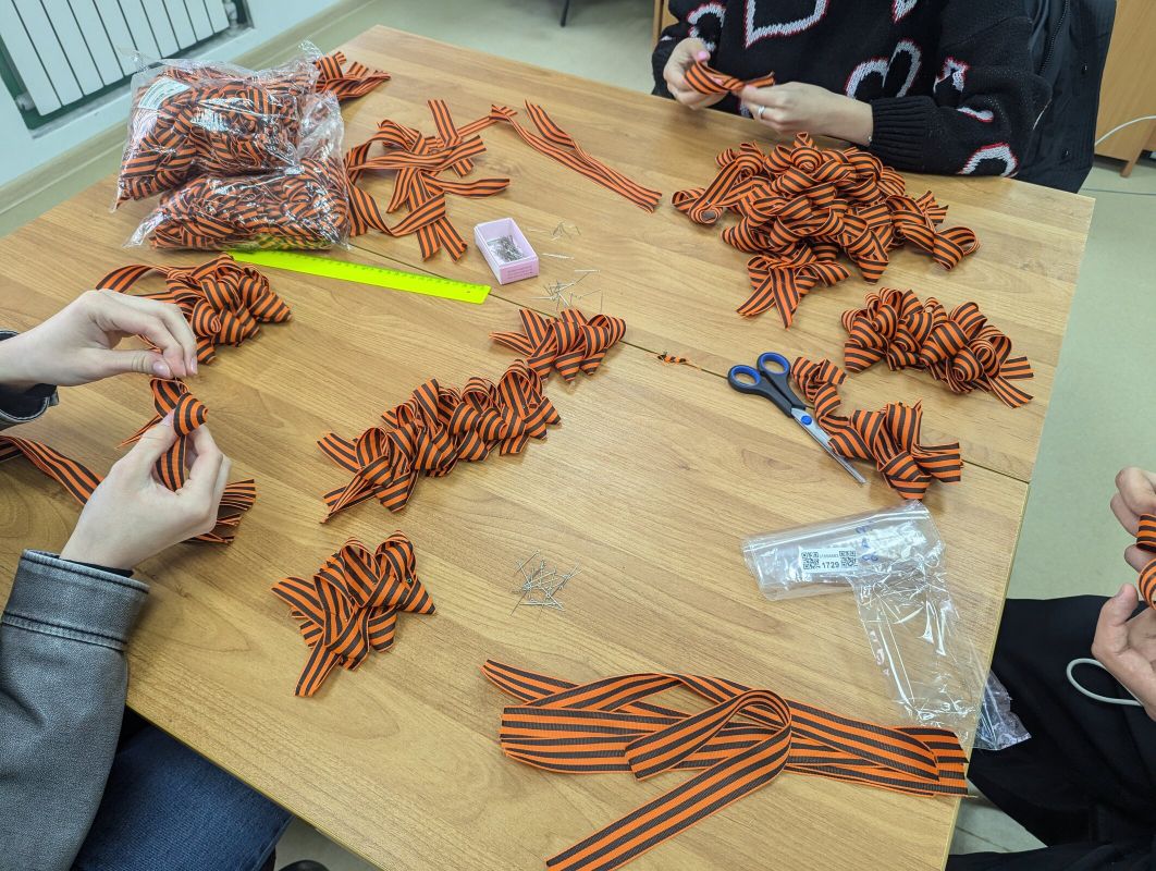 Каждый элемент создавался с особым трепетом — участники акции вложили в работу не просто время и усилия, а искреннюю благодарность героям Великой Отечественной войны. Процесс объединил ребят: они учились правильно оформлять ленты, закреплять их на булавках и проверять качество готовой продукции.