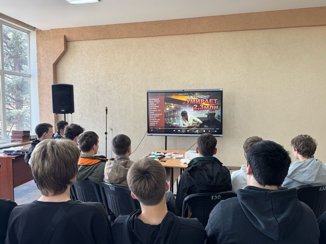 Также состоялся показ тематического фильма, посвящённого вопросам безопасности на рабочем месте. Мероприятие было организовано с целью повысить осведомлённость студентов и сотрудников о правилах охраны труда и важности их соблюдения.